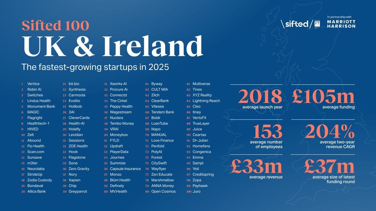 Robin AI has landed the #2 spot on the Sifted 100: UK & Ireland’s Fastest-Growing Startups 2025, with a 640% two-year CAGR.